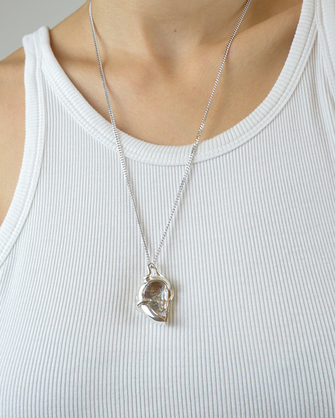 This one-off selection of amulets is intended to showcase the natural beauty of a real seashell. All the pieces of jewelry are tailor made and are unique as each seashell has its own history. Every abalone has been either collected by Noé or gifted to Mermere.