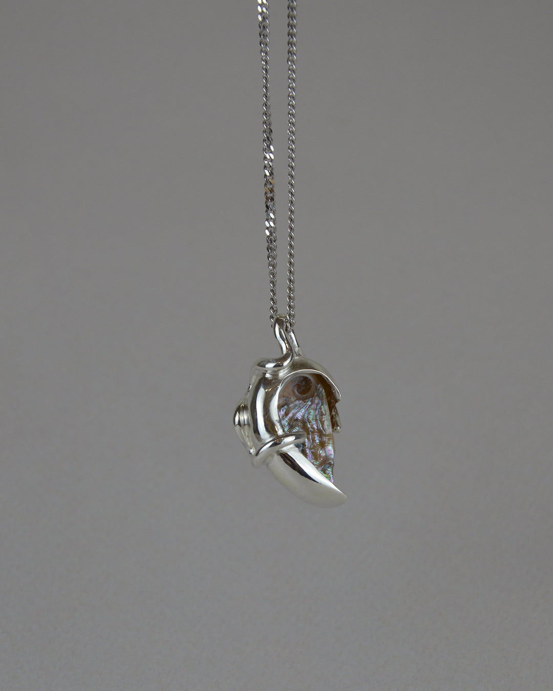 The amulets are composed of an abalone protected by a silver shell revealing subtly the colours from the nacre.
