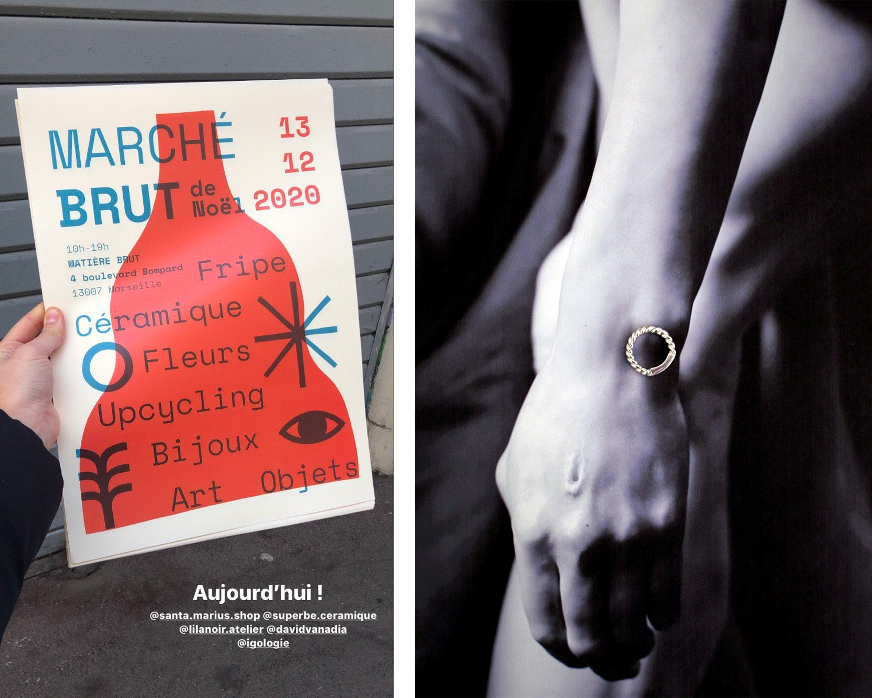 "Matière Brut, une table et un lieu d'exception qui ouvre ses portes pour l'occasion. Un geste solidaire de Jérémy Julien dans ce contexte si particulier. Venez découvrir et acheter des créations artisanales, céramiques, éditions, petits objets divers, fleurs, bijoux, vêtements d'occasion... le tout réalisé par des créateurs locaux... Alors venez avec votre curiosité et votre bonne humeur. Vous passerez un très bon moment, et n'oubliez pas d'apporter votre porte-monnaie aussi, c'est Noël !" extrait de l'article Le bonbon Marseille