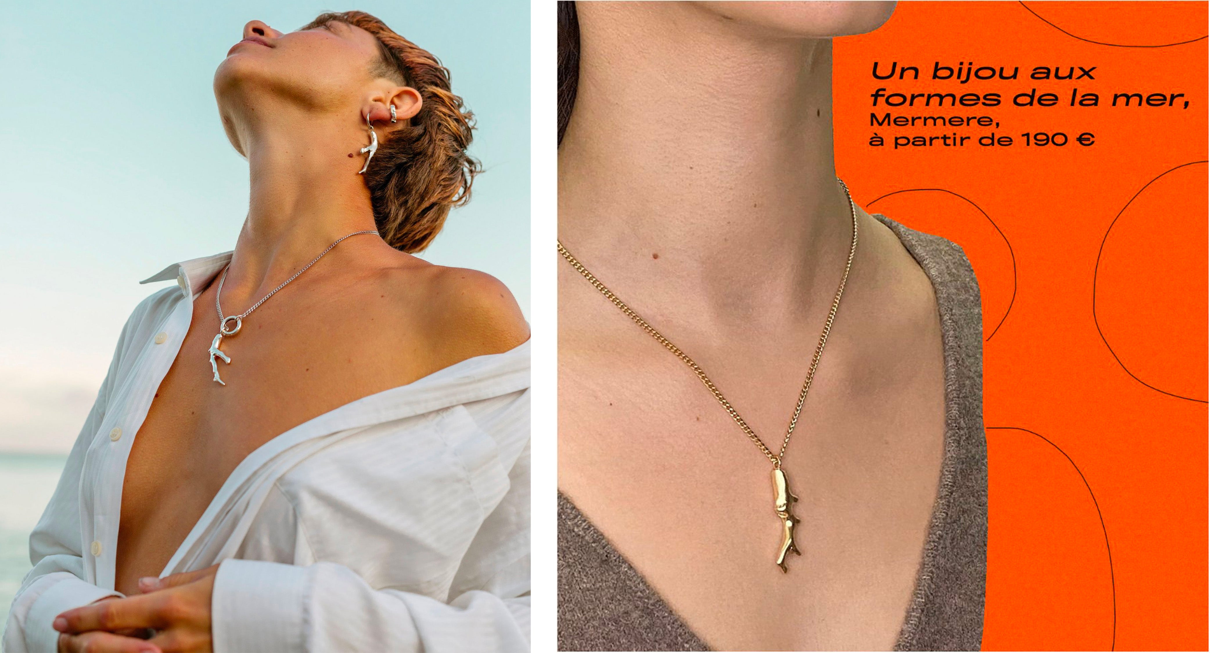 «Chouchou mode : les accessoires indispensables de l'été mais éthiques. C'est la marque ultra chic de cette sélection : MERMERE est une griffe marseillaise où chaque pièce est fabriquée à la main dans des métaux très précieux. La qualité du luxe a donc un prix. Mais cela vaut le coup si vous cherchez un bijou unique, gender fluid, qui soutient l'artisanat local.