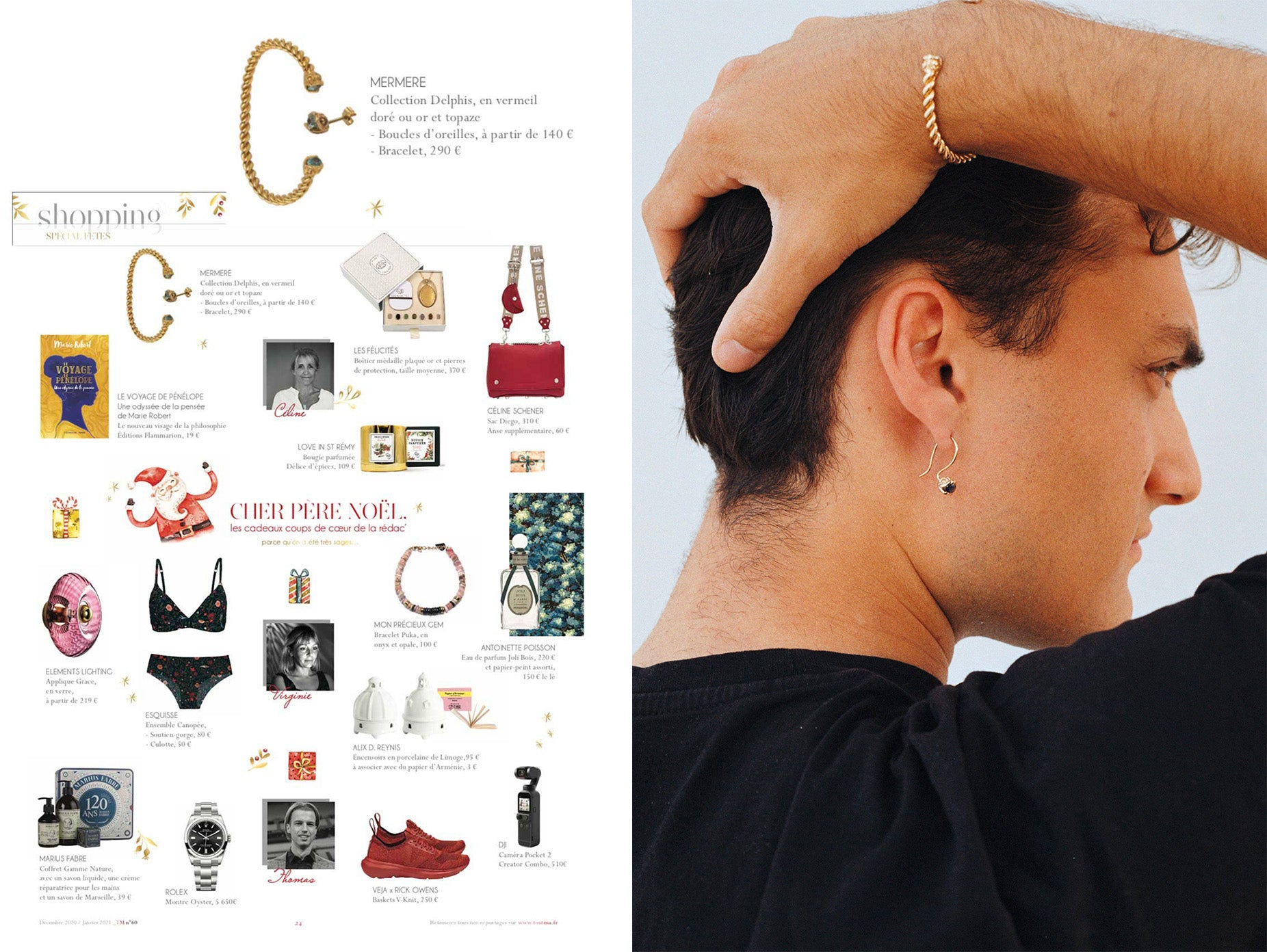 Céline Albertini Bouchard, rédactrice en chef de ToutMa magazine, a réservé une place de choix à Mermere dans sa sélection de vacances 2020. Le bracelet et la bague Delphis Gems ont été repérés à la page 24 de l'édition de décembre 2020/janvier 2021.